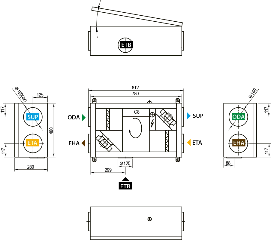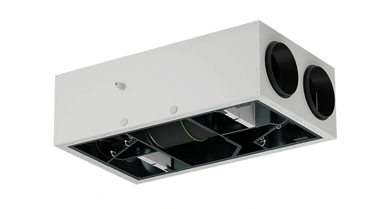 - Maksymalny strumień powietrza - 150 m3/h. Wysokosprawny wymiennik obrotowy sorpcyjny-entalpiczny; sprawność temperaturowa odzysku ciepła - 82%.